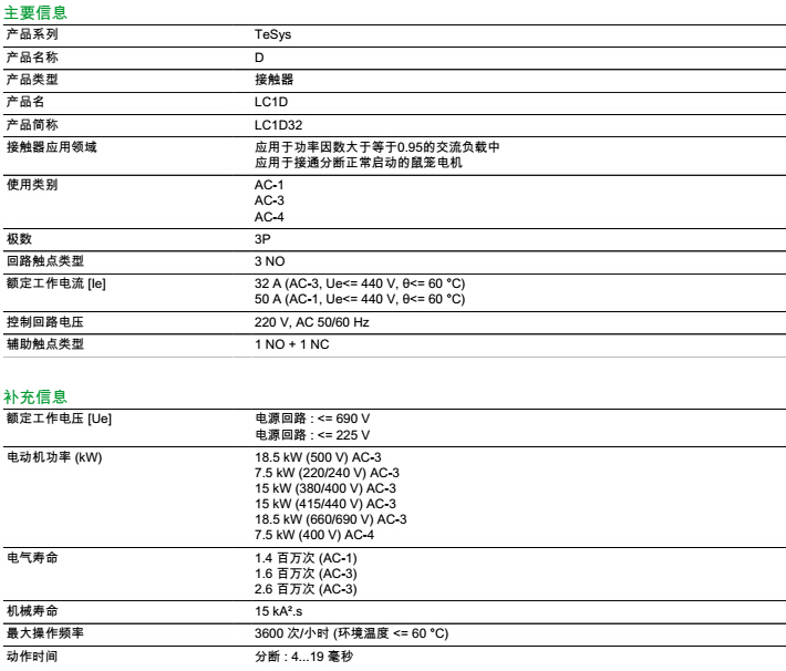 TeSys D 三极接触器 - 32 A - 220 V - 50/60Hz