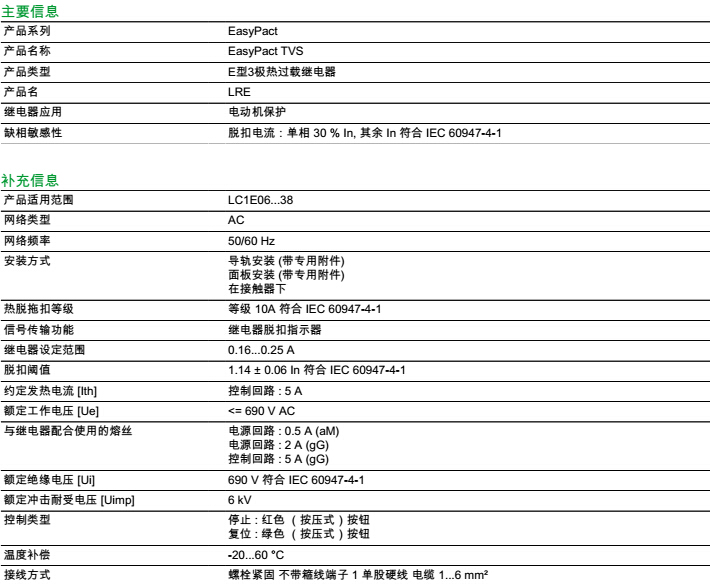 EasyPact TVS 3 极热过载继电器, 脱扣等级: 10 A, 设定范围: 0.16...0.25 A