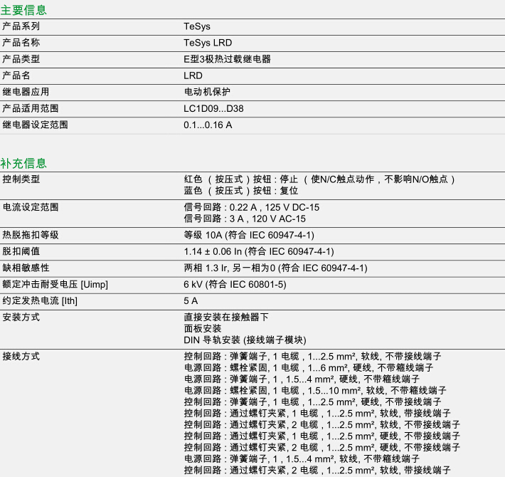 施耐德LRE06N热过载继电器