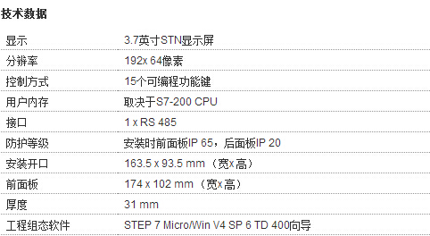 SIMATIC S7- 200微系统进行了定制。由于微型面板是完全适应于SIMATIC S7-200控制器的