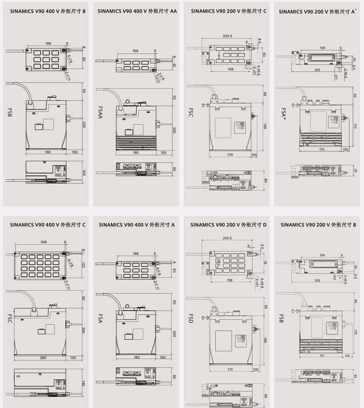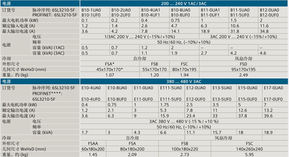 不同的电机轴规格,功率范围从0.05kW到7.0kW以及单
