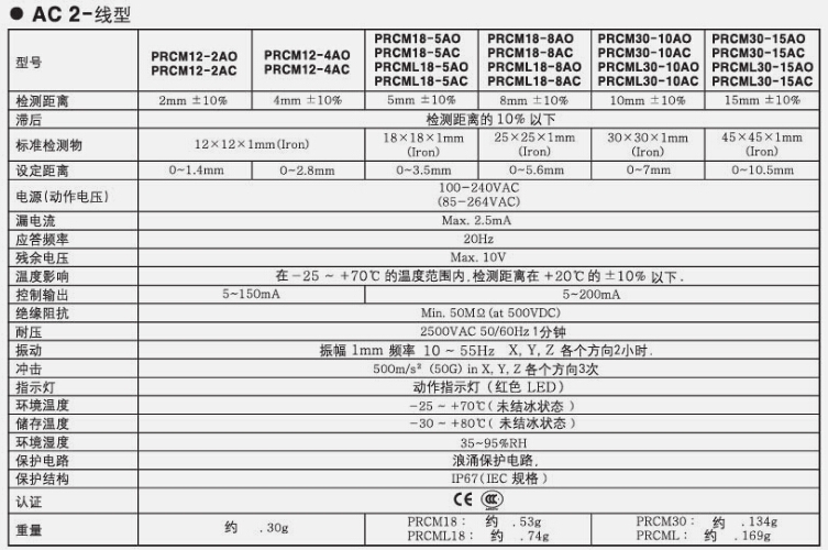 autonics韩国奥托尼克斯接近开关PRCM系列