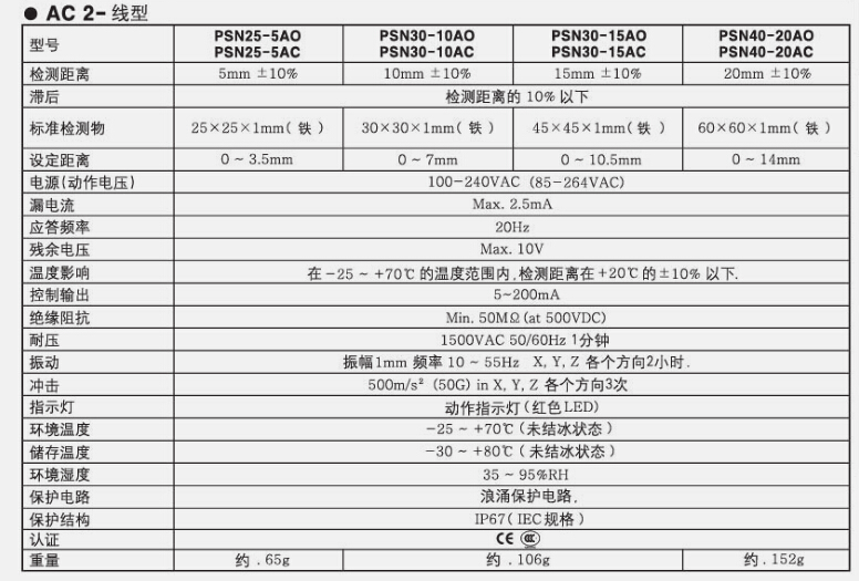 奥托尼克斯接近开关PS/PSN系列