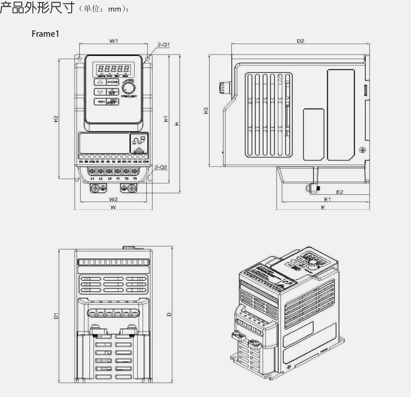 | AL系列机型: 单相220V,面板不可外拉,无内置刹车单元 |