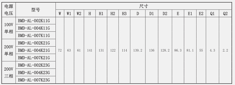 | BMD-AL-002K11G 单相110V,0.2KW, |