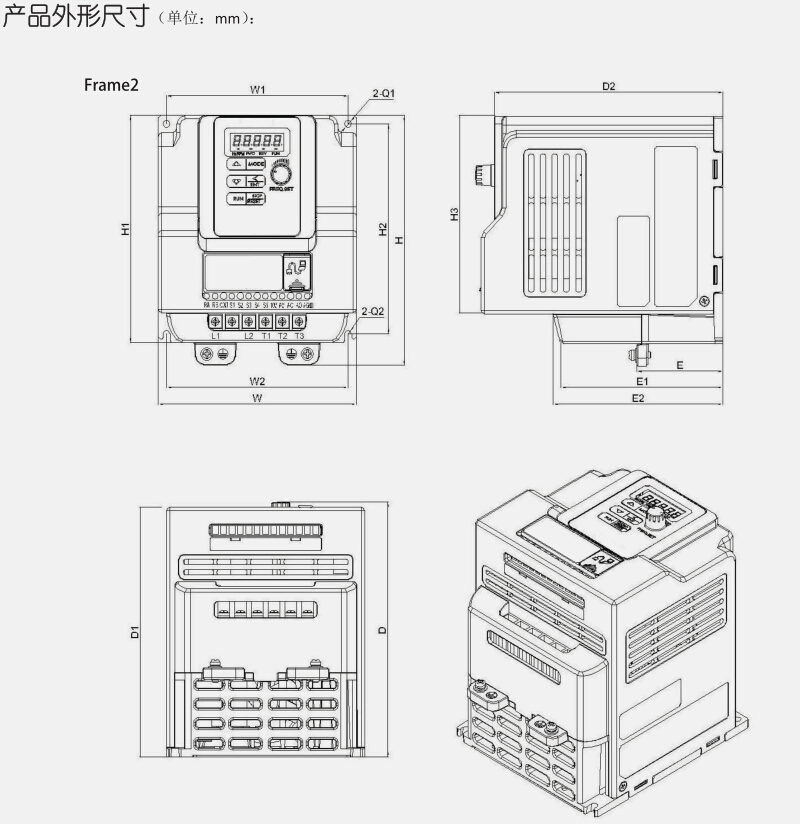 | AL系列机型: 三相220V,面板不可外拉,无内置刹车单元 |