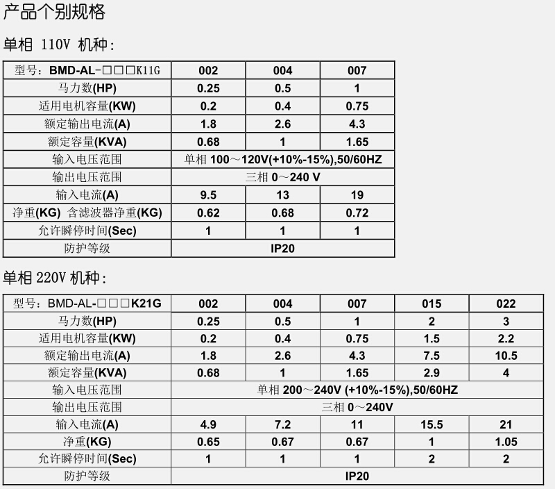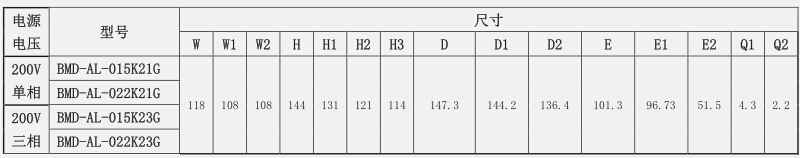 | BMD-AL-022K21G 单相220V,2.2KW |