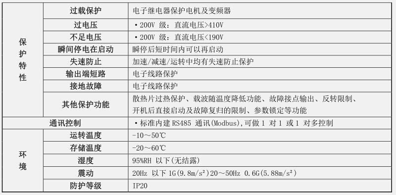* 150%/1min过载能力,150%/3Hz启动转矩