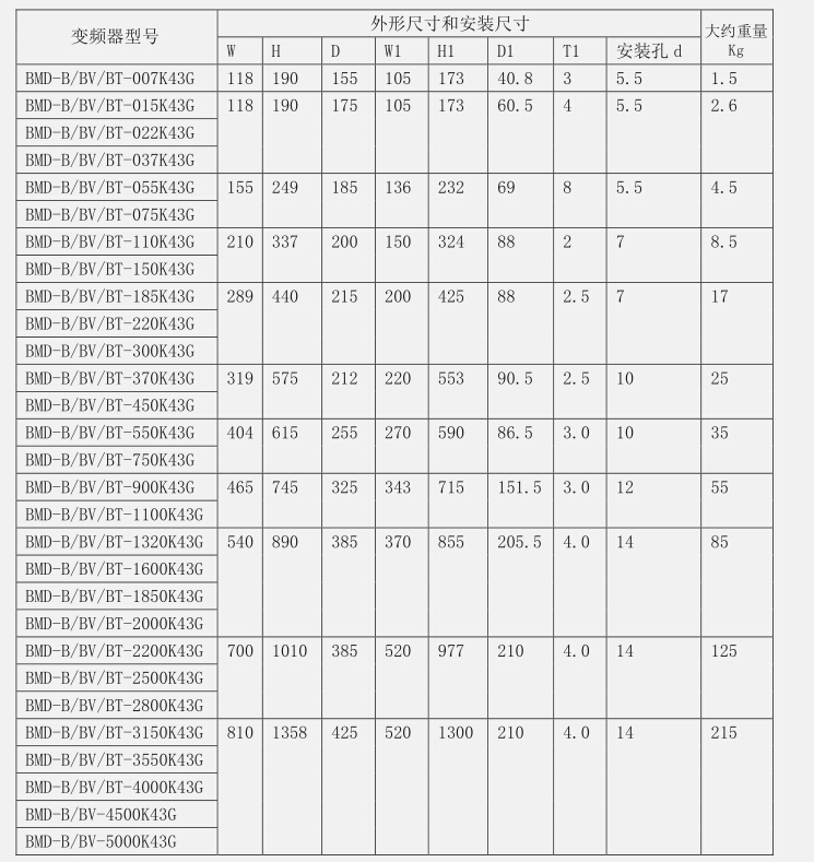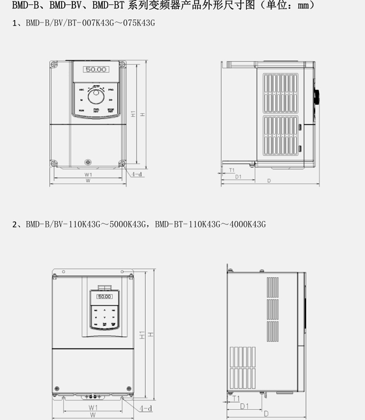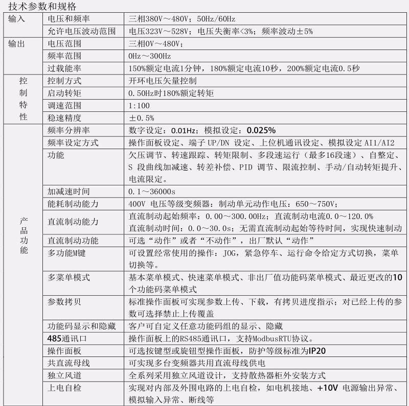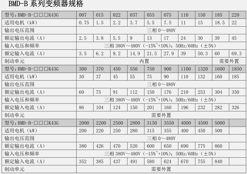* 制动单元:0.75KW-15KW内置,18.5KW-500KW需外置制动单元