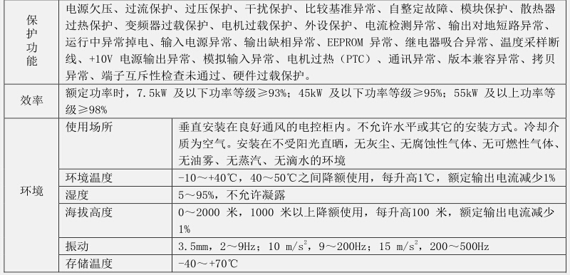 * 过载能力:150%/1分钟,180%/10秒,200%/0.5秒