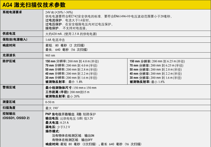 * 保护区域的距离4m到6m,分辨率30mm到150mm
