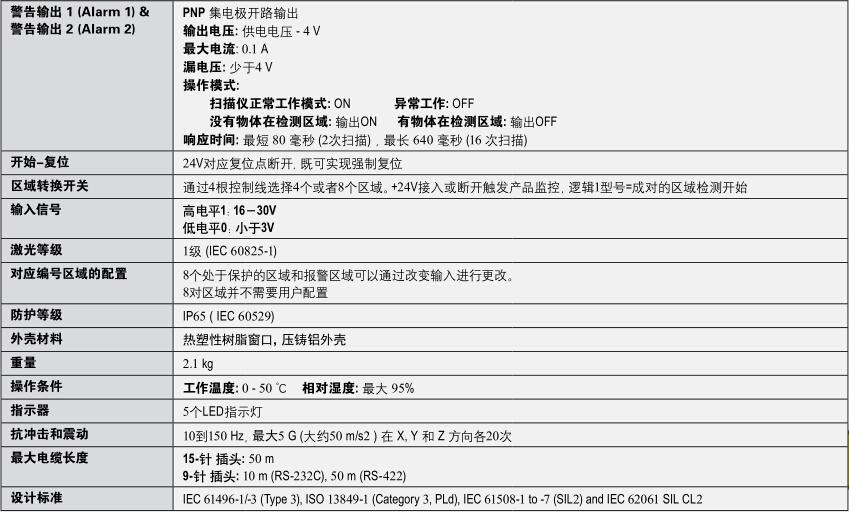 * 两个固态OSSD安全输出(250 mA)及两个固态附加输出(100 mA)
