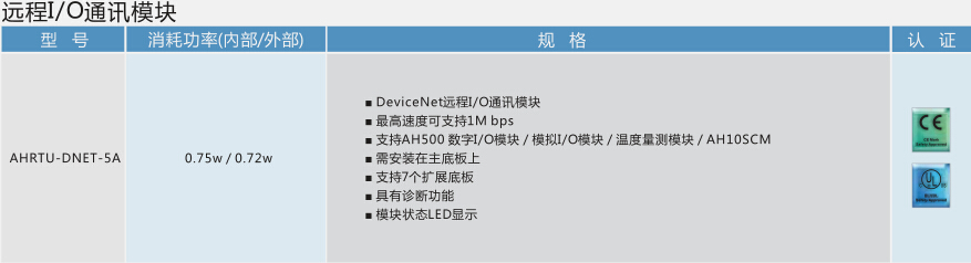 | AHRTU-DNET-5A | DeviceNet远程RTU模块 |