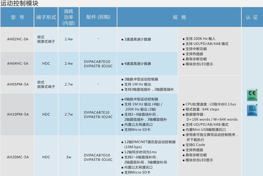 | AH05PM-5A | 2轴脉冲型运动控制模块 |