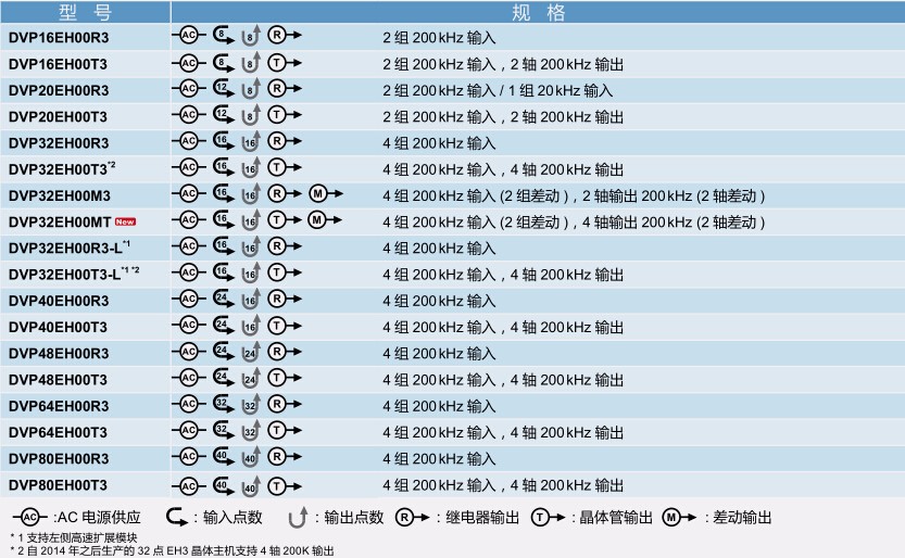 | DVP32EH00T2 32点主机,16DI/16DO(晶体管),二路 200K输入/输出 |